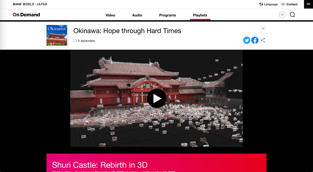Perhaps one of the best media resources for non-Japanese language speakers is NHK World which is available as website and a standalone app for the Apple App Store and the Google Play Store. Recently they added playlists from their On Demand collection and there’s one for Okinawa!