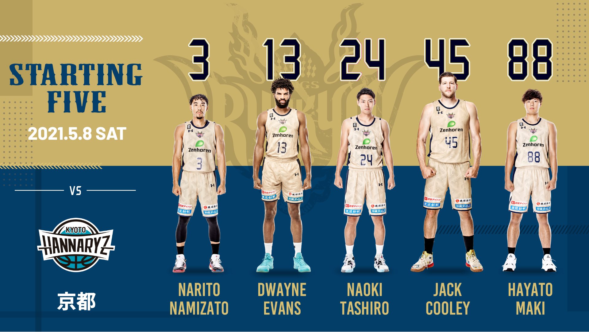 We previously posted about the professional baseball team, Ryukyu Blue Oceans, and today we’re introducing a professional basketball team in Okinawa: the Ryukyu Golden Kings. Founded in 2007, they play home games at the beautiful Okinawa Arena and away games throughout Japan. The Golden Kings play in the top B1 West Conference of the B.League and have several players from Okinawa (the image above shows #3 point guard Namizato Narito). We’ll feature one more professional sports team in a future post (hint: it’s called by a different name depending on the region)!