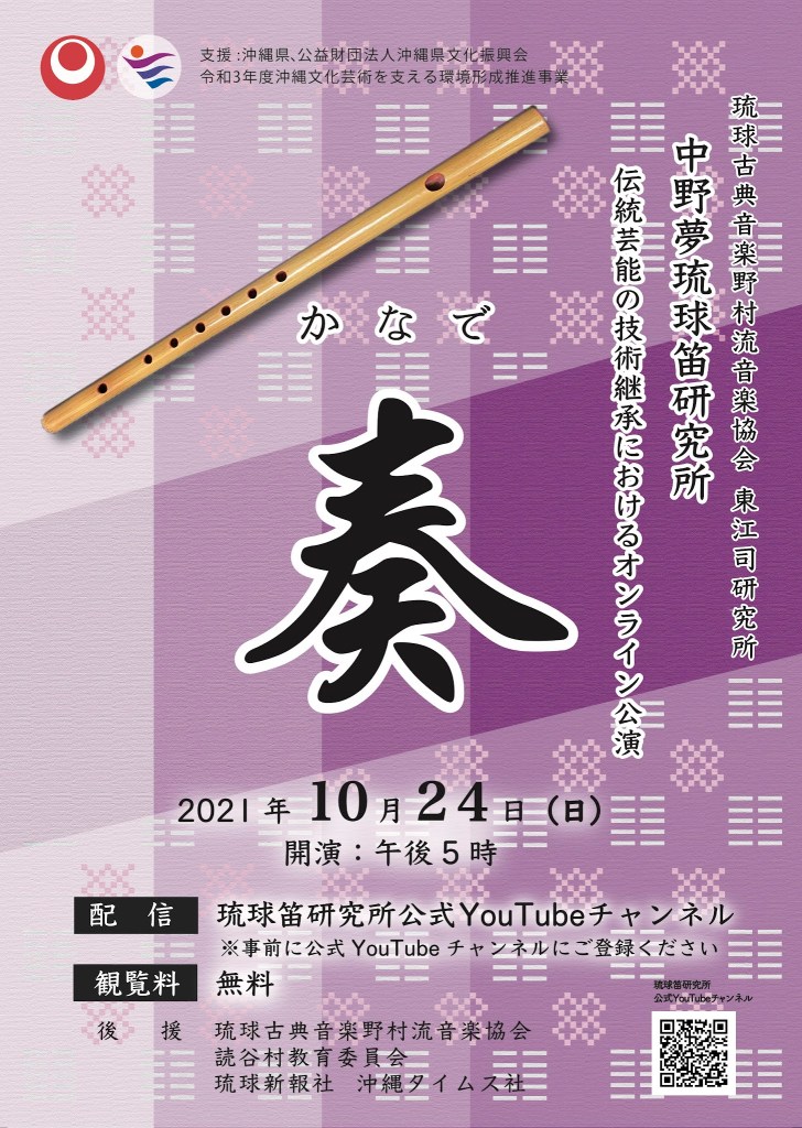 Due to the pandemic, the Ryūkyū Fue Kenkyūjo will be holding their concert online on YouTube for free this year. Also called Ryūteki, the Ryūkyū fue (flute) is a beautiful instrument and although it’s an accompaniment instrument in classical music, it will be interesting to see how it’s performed for this concert. The concert will also feature musicians from Nomura-ryu Koten Ongaku Nomura-ryu Ongaku Kyokai.